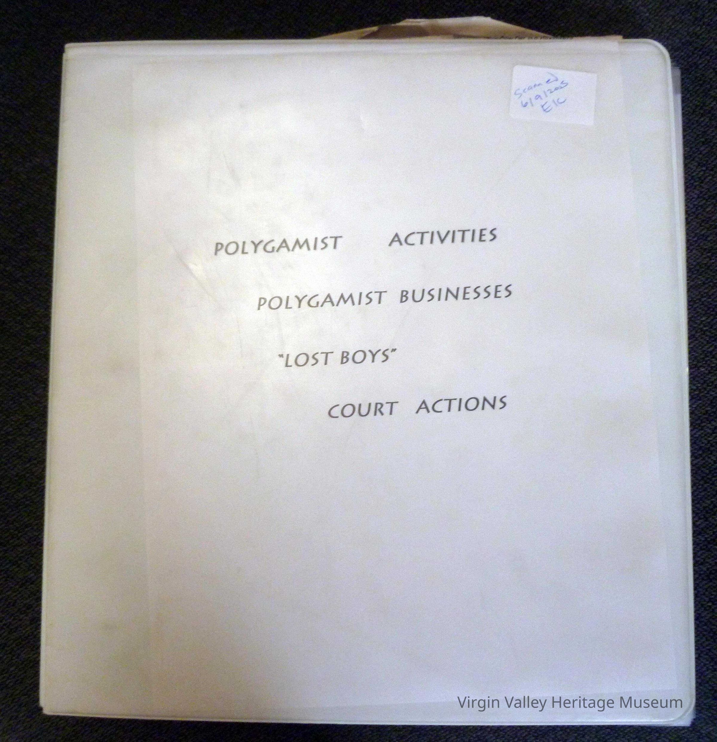 Collection of articles, writings and court documents on Polygamy; their businesses and Activities; family structures, etc. Also articles on the Lost Boys and court actions.