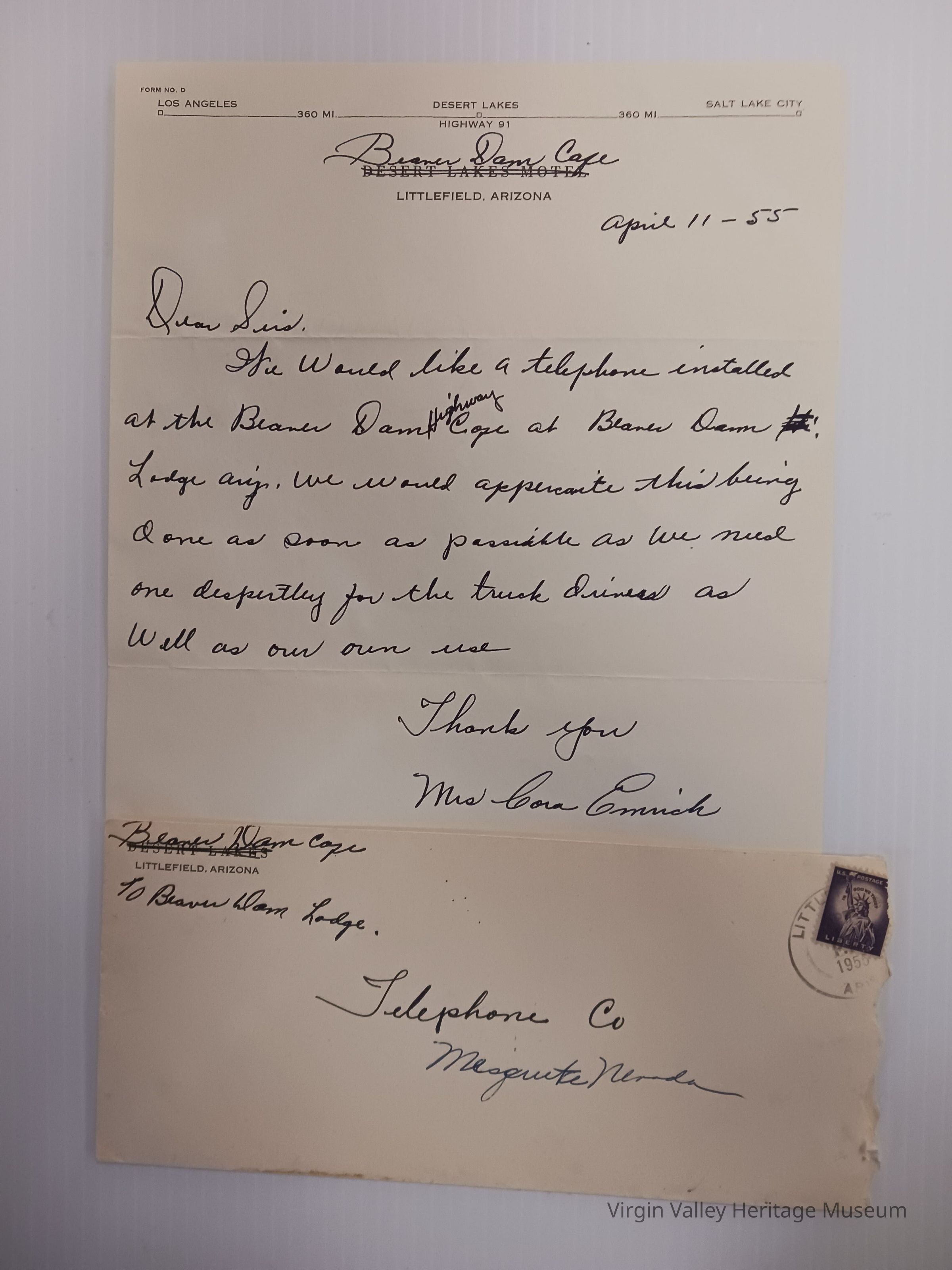 original letter from the Beaver Dam lodge request for a telephone 1955