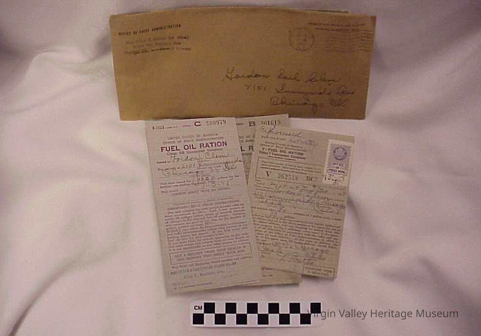War Rations for Fuel Oil - Used during W W I I - Issued to Gordon Clem in Chicago, Ill Envelope with receipts for fuel Oil and Water