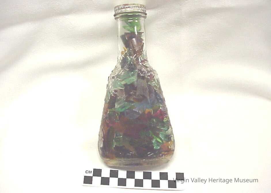 Salad Oil Bottle filled with colored glass, made by nor Hughes grand children