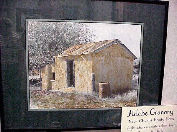 Adobe Granary Near Charlie Hardy Home Light chalk and watercolor by George A. Jeffs