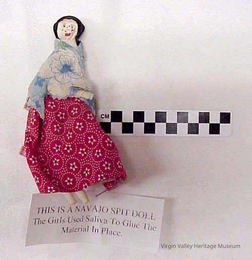 A Navajo spit doll. It was so named because little girls made the dolls by using their spit as a glue to hold the material in place.