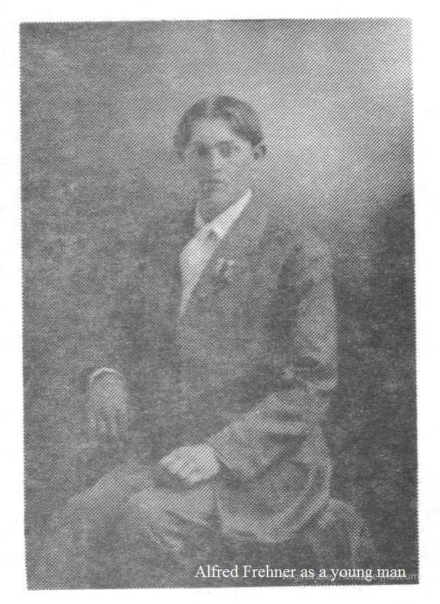 A photo of Alfred Frehner as a young man, likely taken in his early 20s, which would have been around the late 1900s.