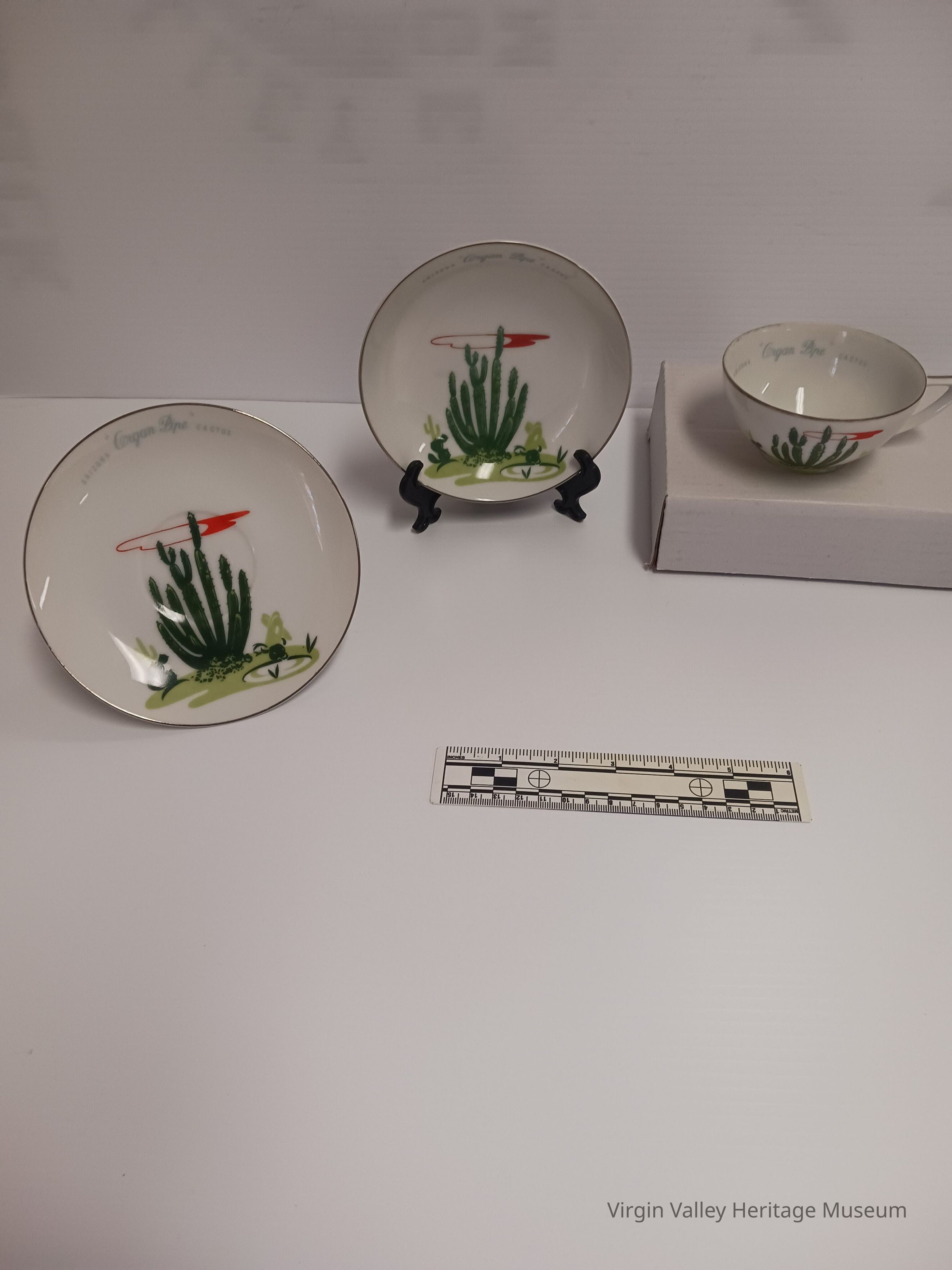 Arizona cactus dishes were given to customers with the purchase of gasoline at certain service stations in Kingman AZ during the late 1940s early 1950s they also gave away pitchers glassware