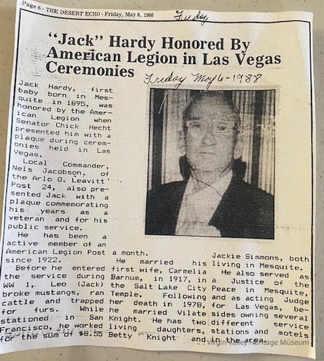 Article Honoring Jack Hardy The Desert Echo may 6, 1968