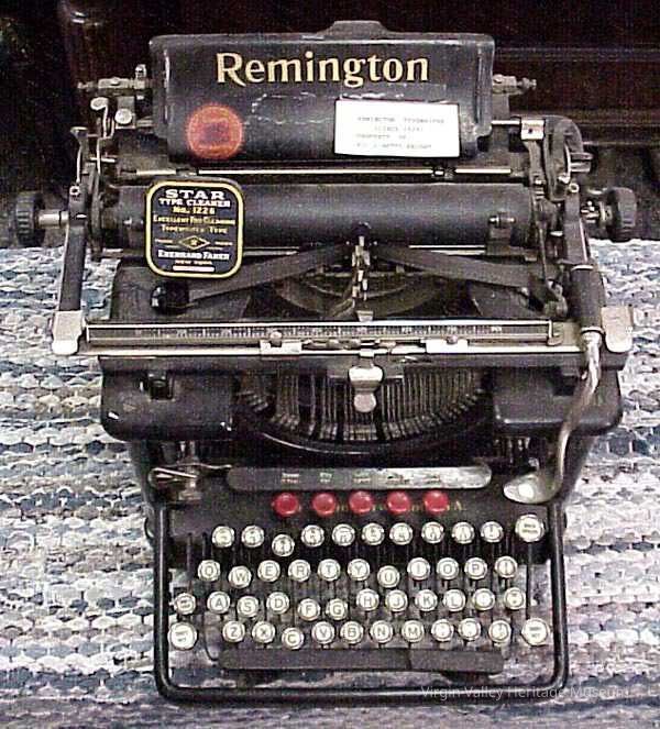A Remington Manual Typewriter from 1924. It belonged to the Knight family and was donated to the museum by Betty Hardy Knight and Victor Knight.
