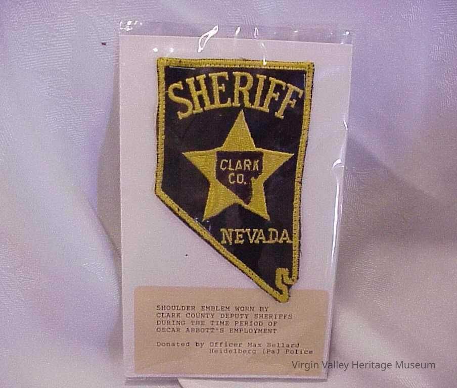 Badge worn by Sheriff officers during the time Oscar Abbott was working. Donated by Officer Max Bellard of Heidelberg, (PA) Police