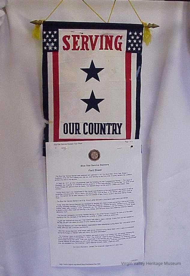 Blue star service banner. Number of stars denotes how many are serving in the family. A gold star was for the ones killed in action