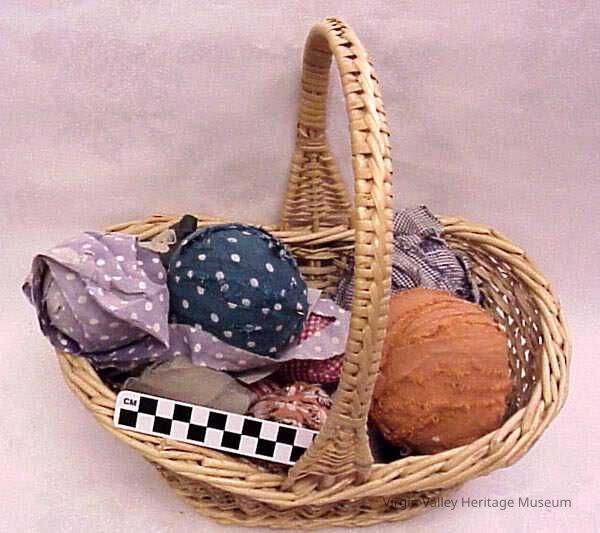 A basket of rags from the 1950s. Rags like this were used to create rag rugs.
