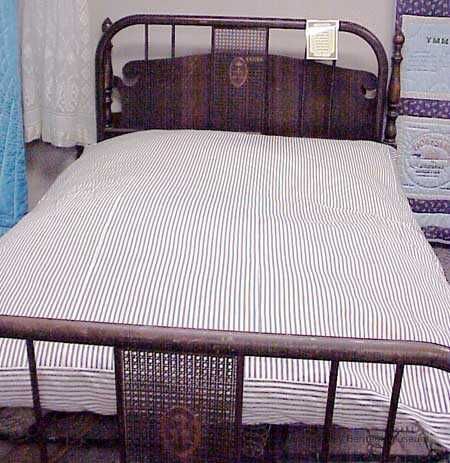 An iron metal coil spring bedstead that was purchased by Samuel Jr. and Mary J. Reber in Moapa, NV around the 1920s. The couple had thirteen children with three sets of twins and helped to settle Littlefield, Mesquite, and Bunkerville.