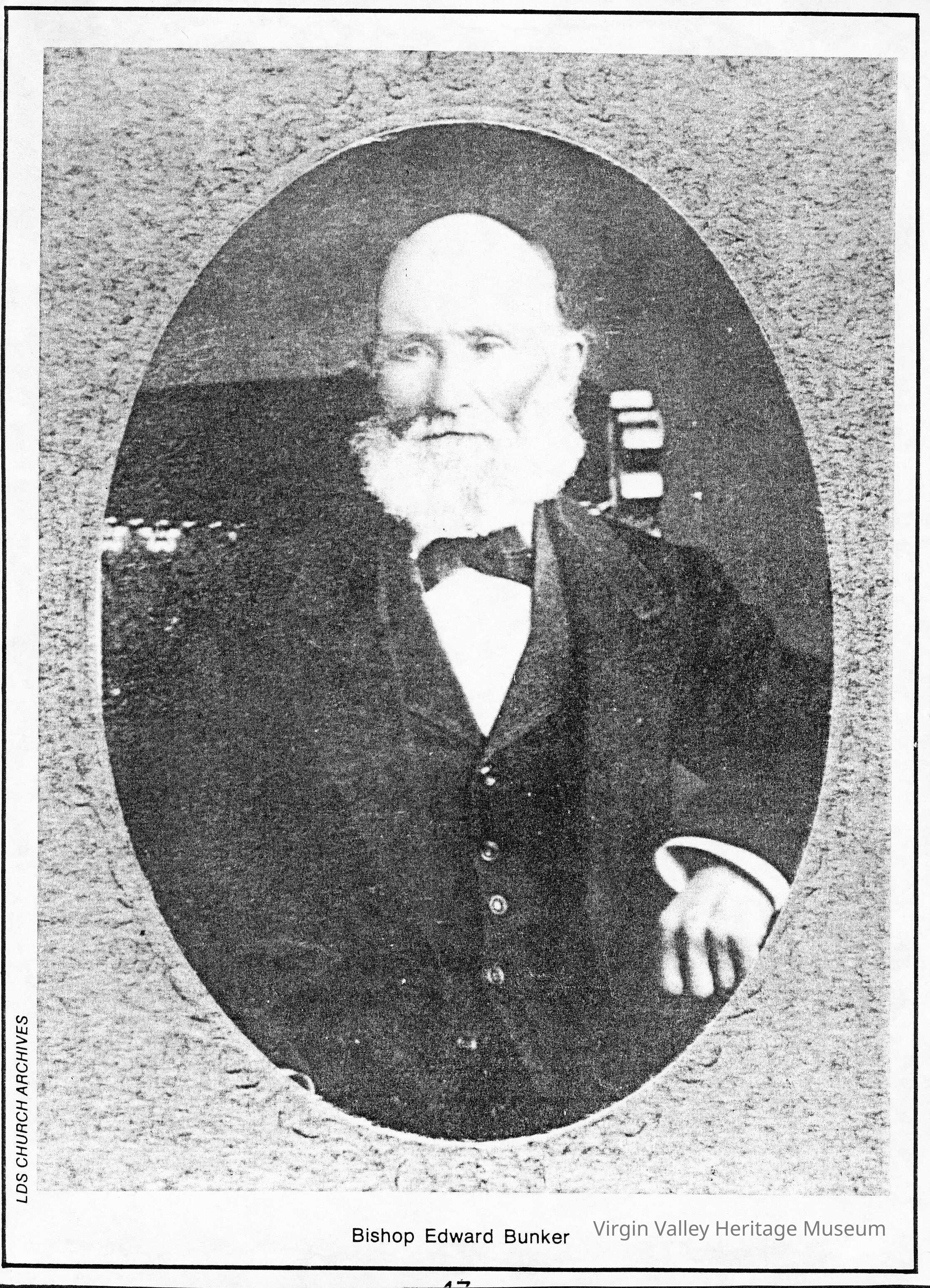 Picture reprint from the LDS Church archives of Bishop Edward Bunker