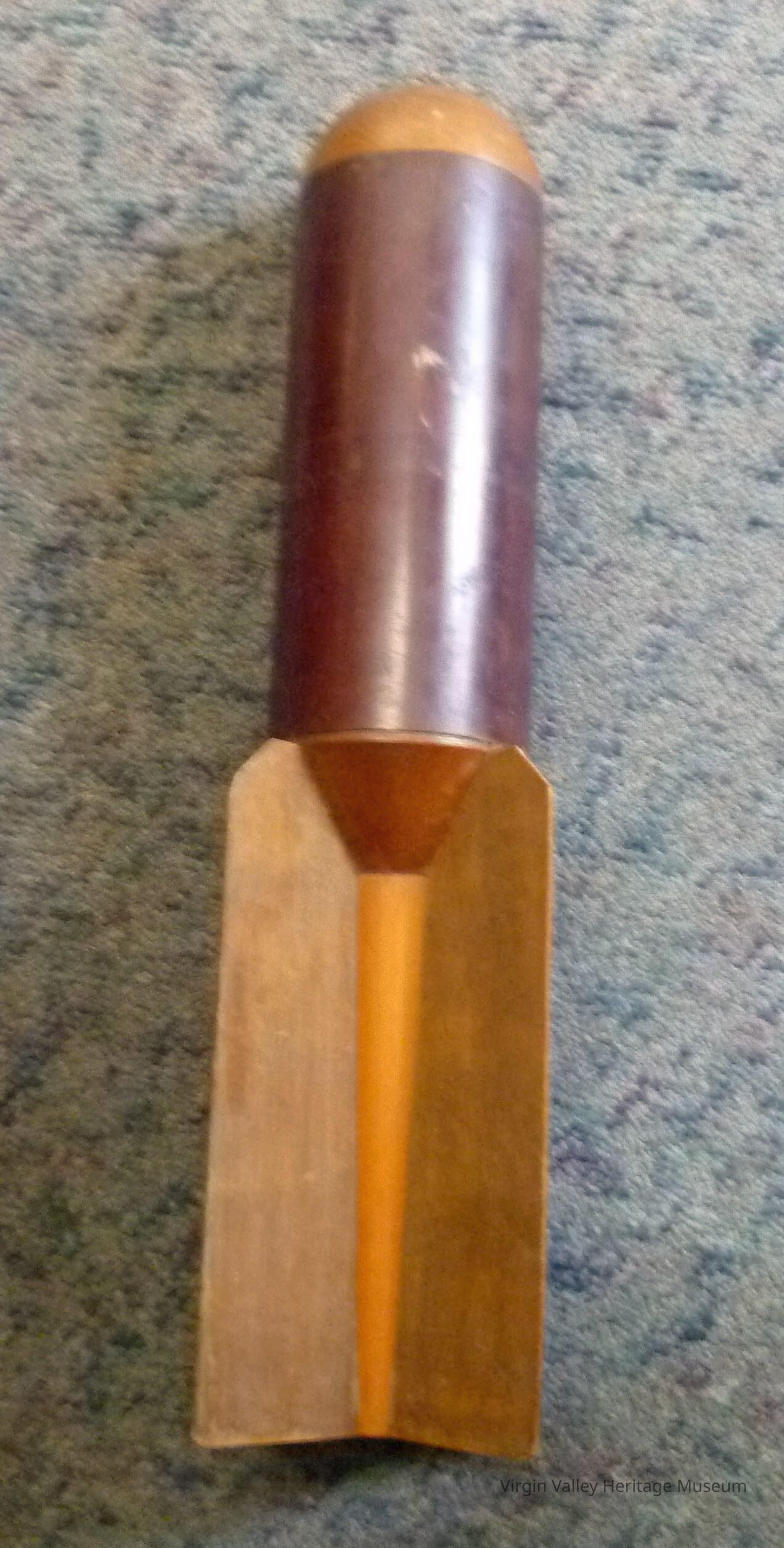 Practice Bomb from between WW1 and WW2. Used for target practice from a plane. The canister was filled with flour or chalk so that when it landed you could tell how close to the target you were. Cammy found this in her Mother's belongings and believes it was her Mother's 3rd husband Chuck.