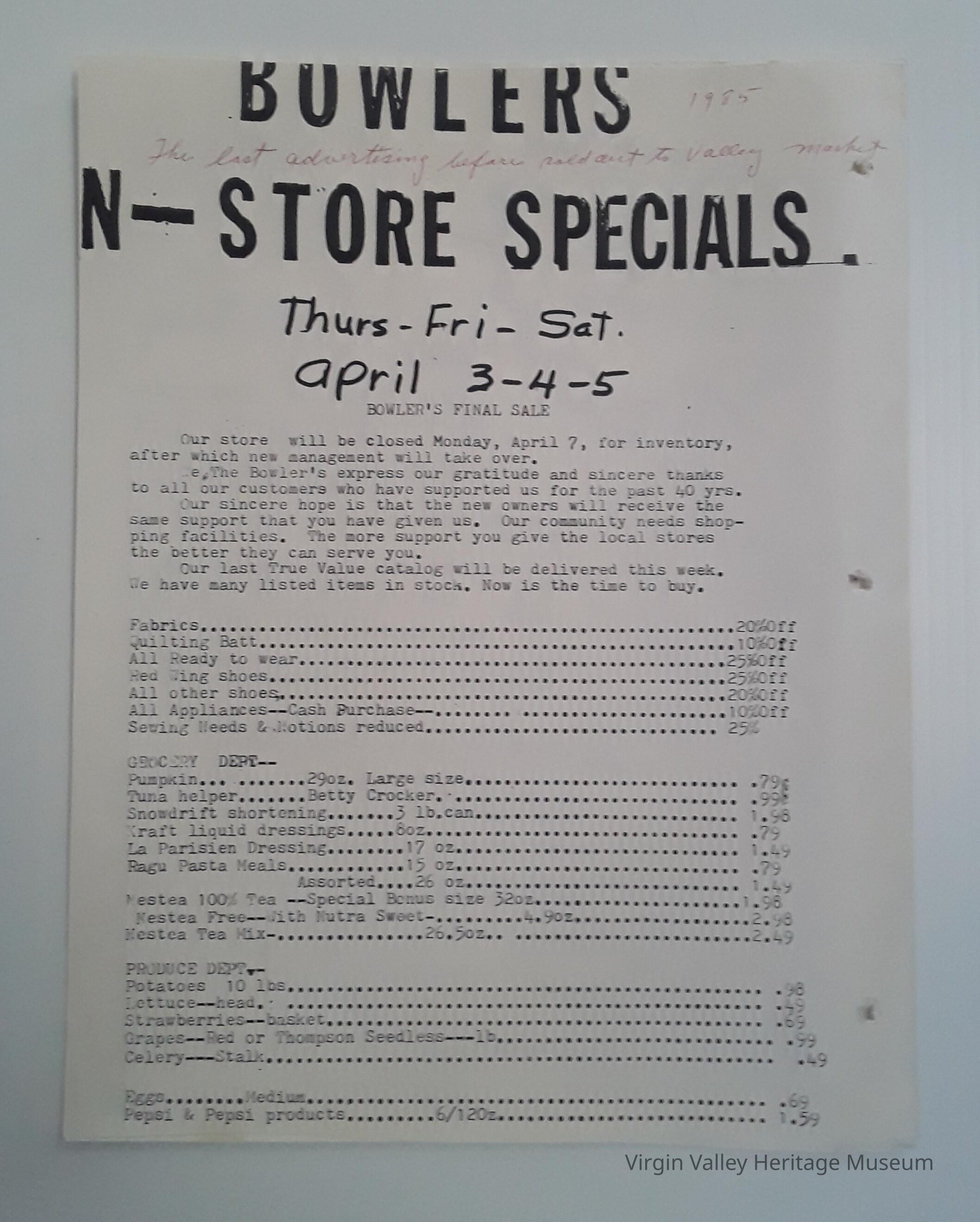 5 pages in total advertisings for Bowlers Store