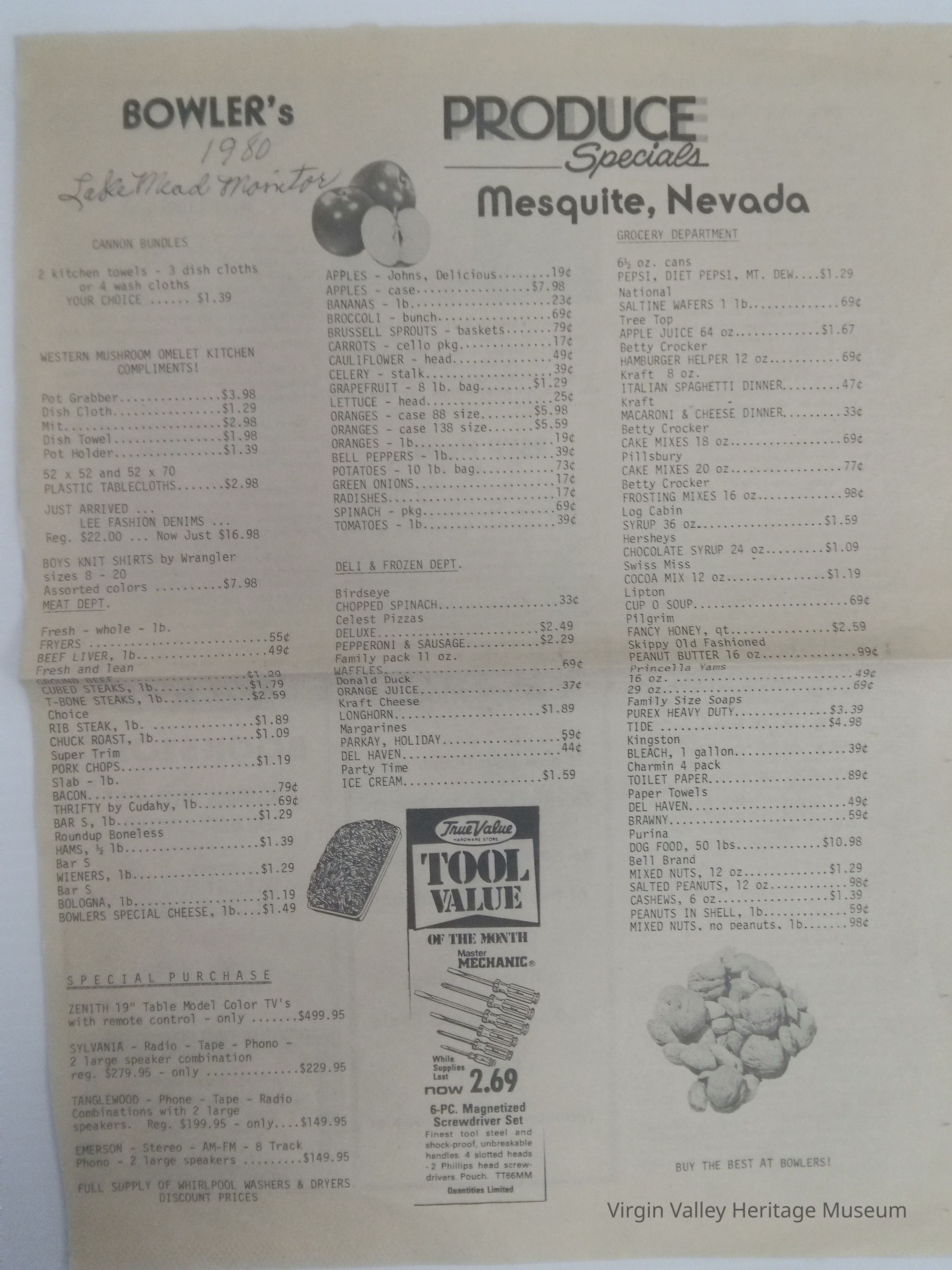 Bowler's Produce Specials circa 1980