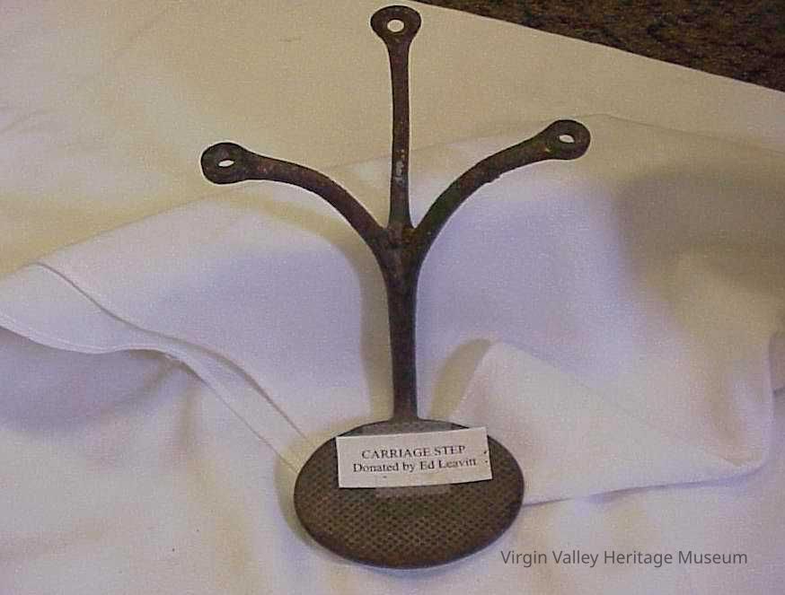 A buggy step. Buggy steps were placed on buggies or wagons to help people step off with ease. Wagons and buggies were the most common mode of transportation in the Valley until the arrival of cars.