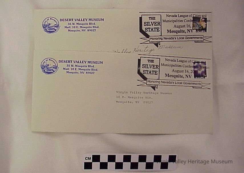 Desert Valley Museum Envelope's Cancelled Aug 16, 2001 - Nevada League of Cities Honoring Nevada's Local Government