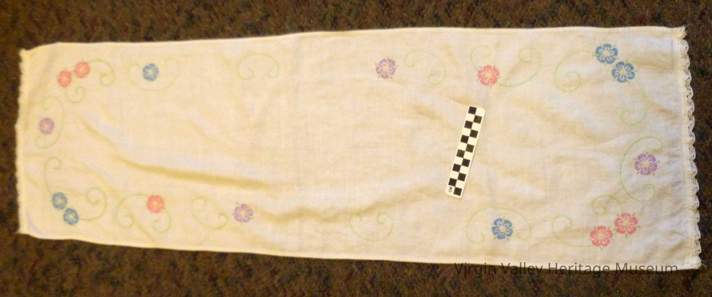 Cloth for Dresser 1' X 4" Hand Made Initials " HAL " are on the small hem