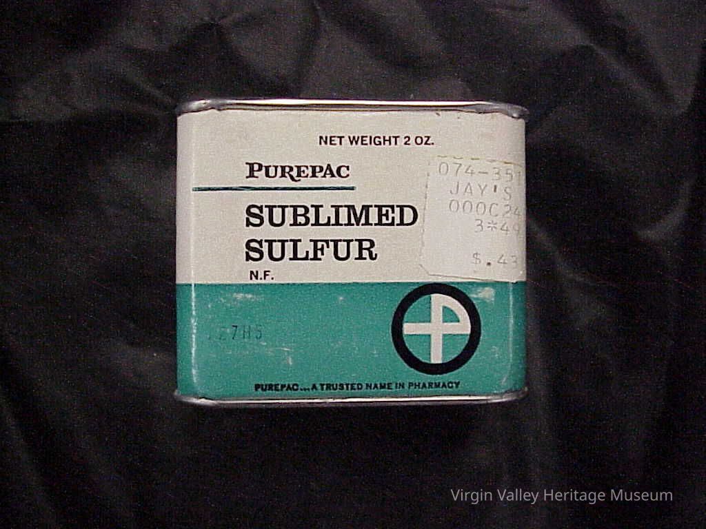 A can of Purepac's Sublimed Sulfur, which was used as a laxative.