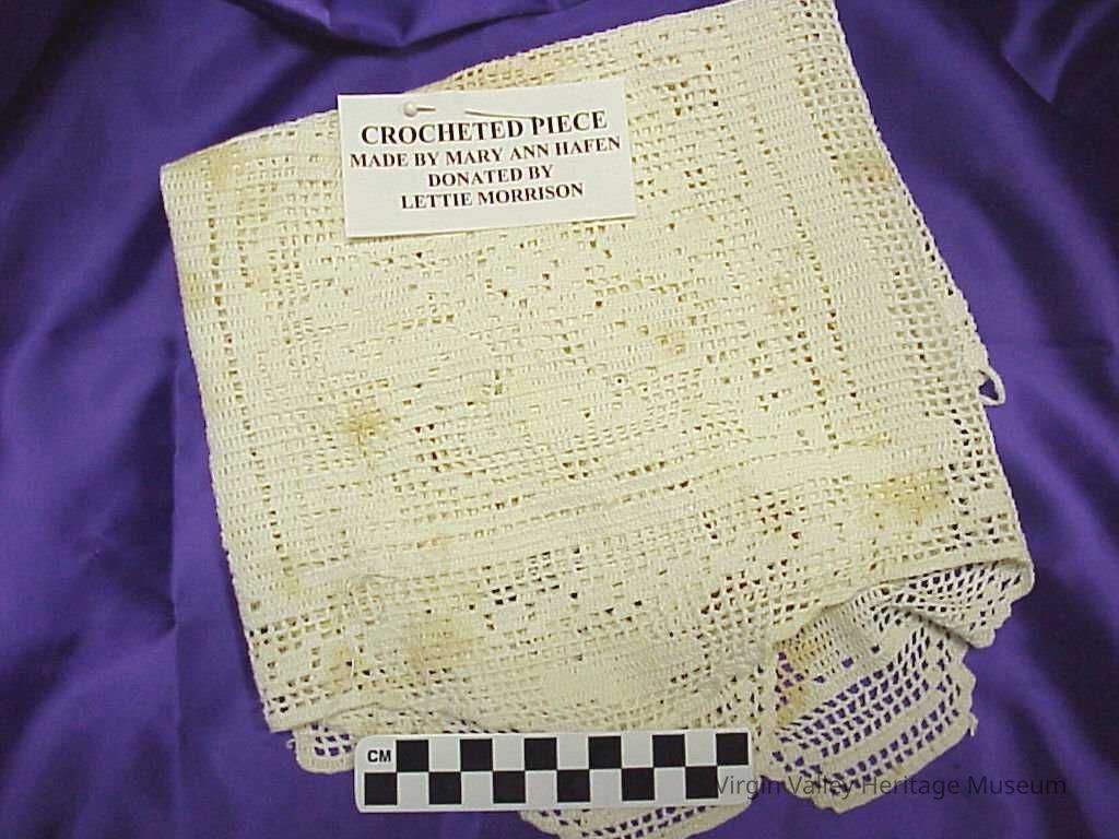 Crochet Piece made by Mary Ann Hafen for chair back, horse design.