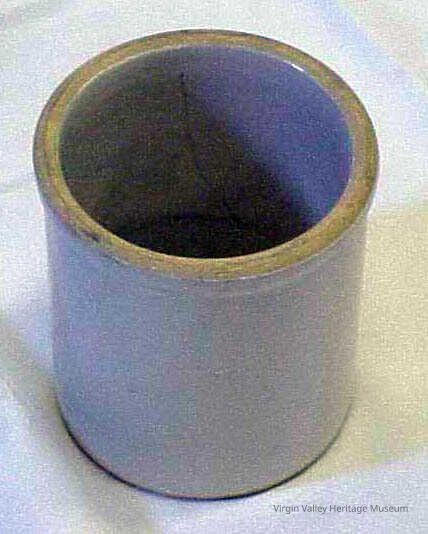 A two-quart crock donated to the museum by Wesley and Verde Hughes's family.