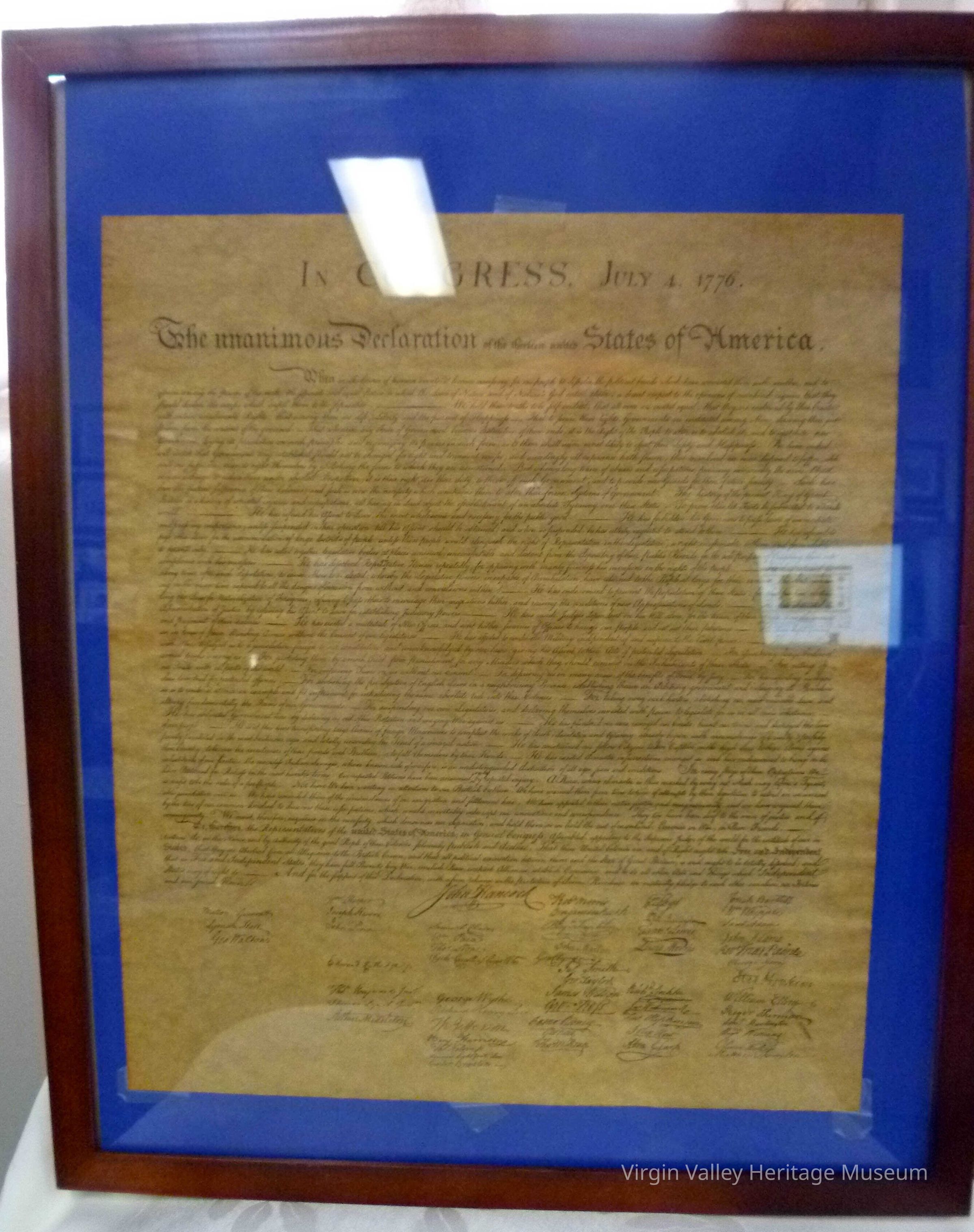 Copy of the Declaration of Independence