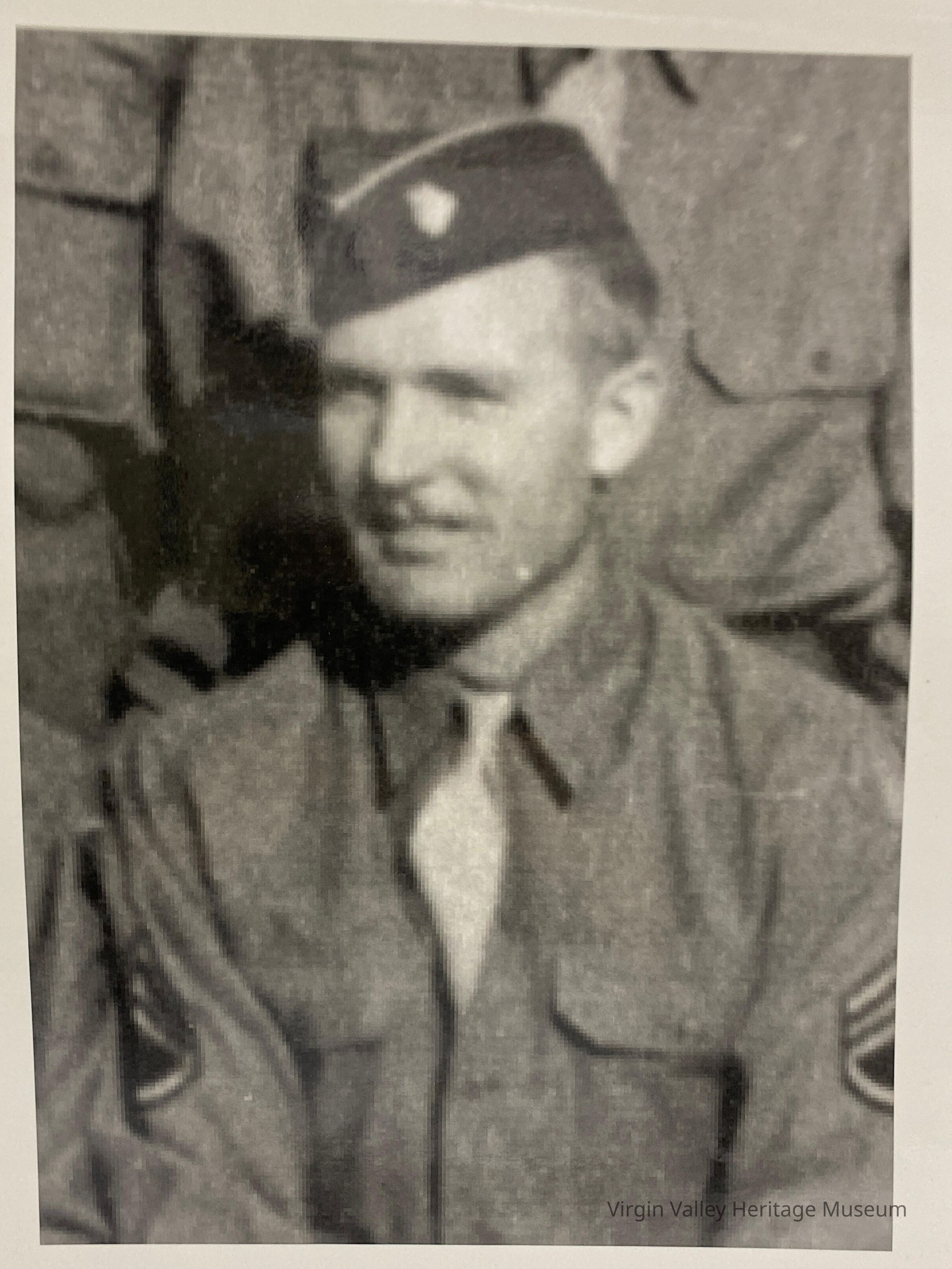 A picture of Derald Jensen in his military uniform. Derald was born in 1920 and served in WWII. While serving in WWII, Derald obtained the rank of Sergeant First Class (SFC). He passed away on November 13, 2001 at the age of 81.
