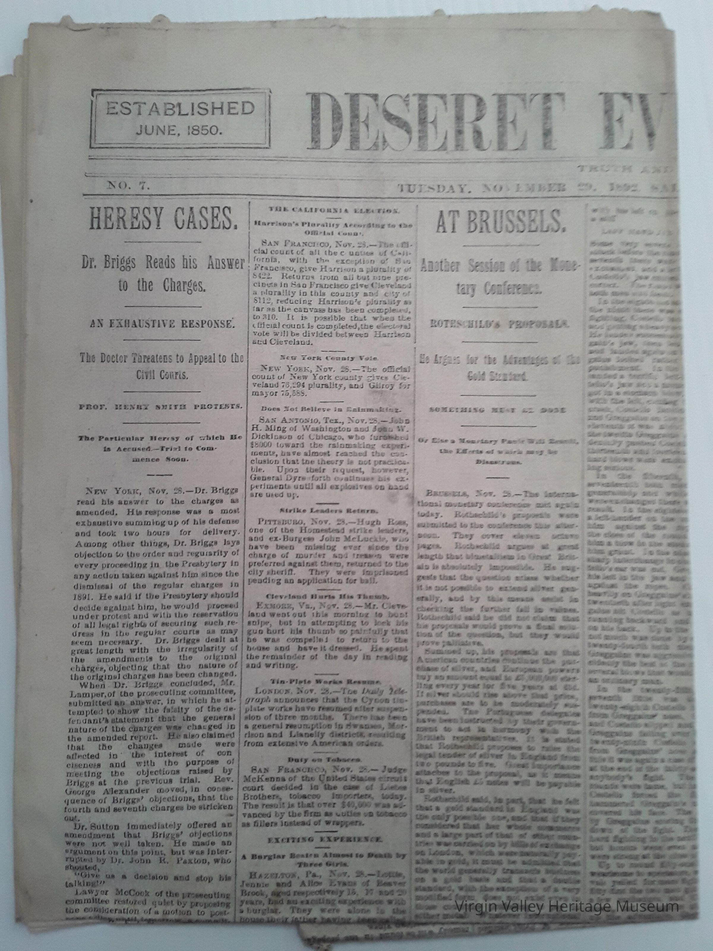 Desert Evening News Tuesday November 29,1892 No.7 Vol. XXVI