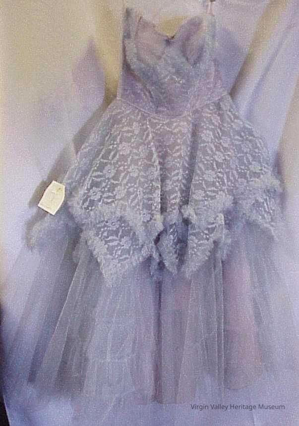 Blue formal worn by Nora hughes' daughter, Ethel Pointer, to her junior prom in 1956