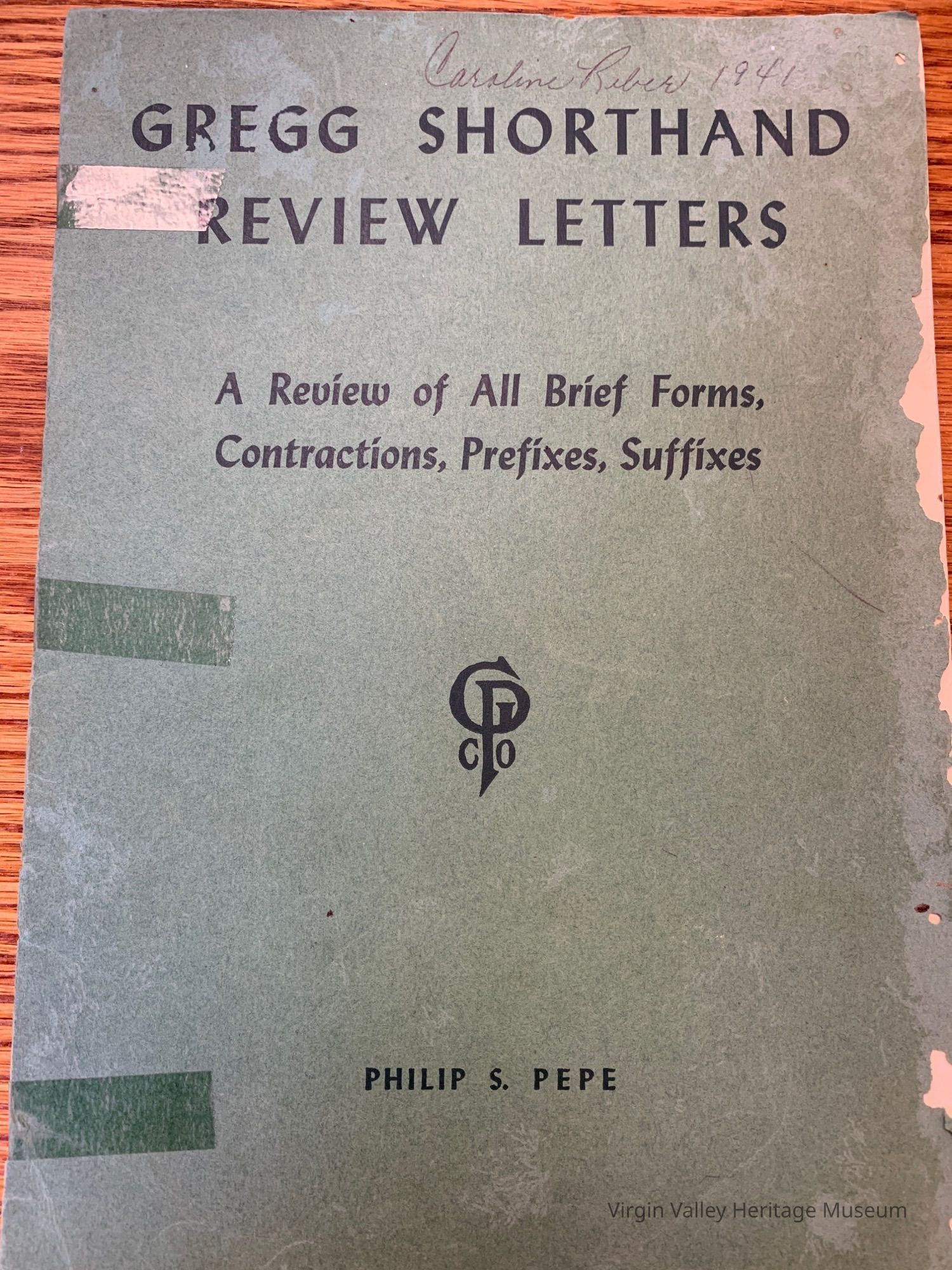 An English grammar book that reviewed English shorthand. It was used by Caroline Reber when she was attending Stevens-Henagers Business College in Salt Lake City, UT in 1941.