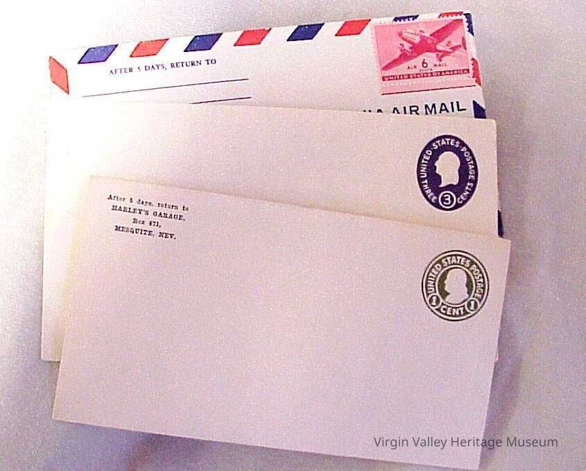 pre stamped envelopes (3) 1 cent -3 Cent - Note - this is in case in firehouse Case - 6 Cent Airmail 2 deeds inside ( Bunker's ) One to Arthur Bunker and one to C. M. Hardy