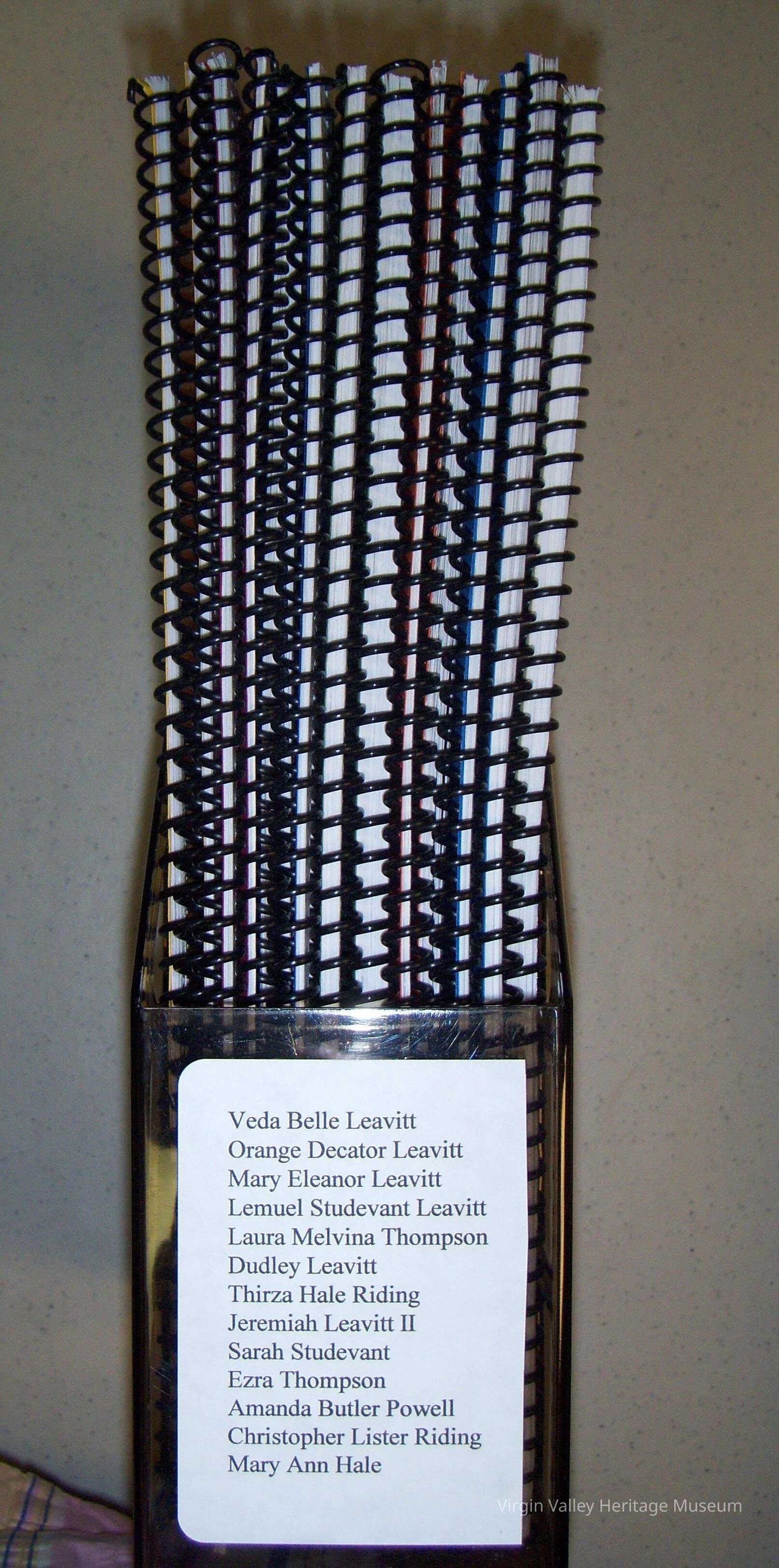 Laura Melvina Thompson, Dudley Leavitt, Thirza Hale Riding, Jeremiah Leavitt II,