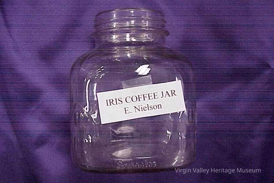 Iris Coffee Jar, belonged to Elmira Barnum circa 1940