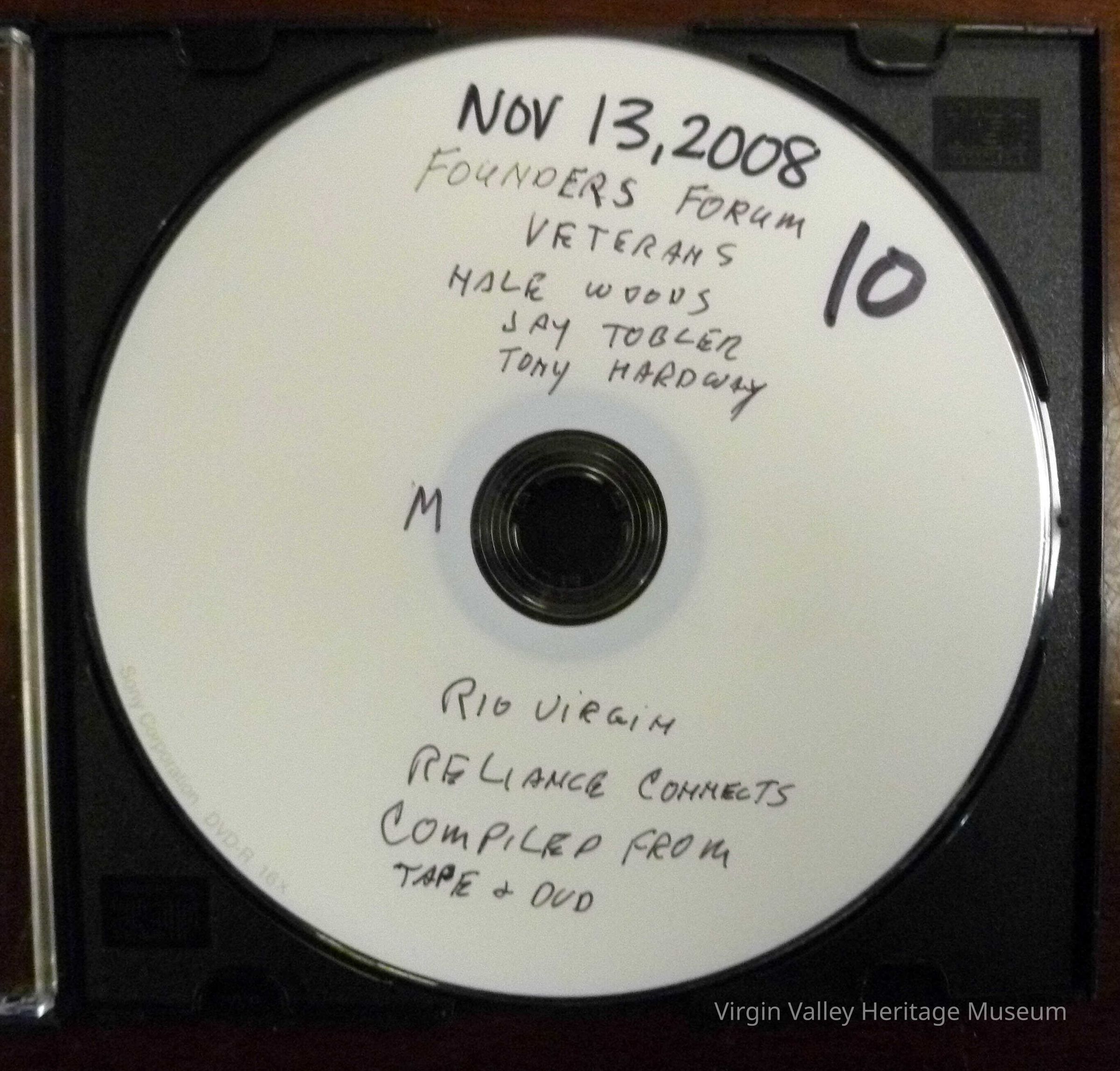 Founders Forum 10 On November 13, 2008 Veterans Hal Woods, Tony Hardway, Jay Tobler compiled from tape and dvd