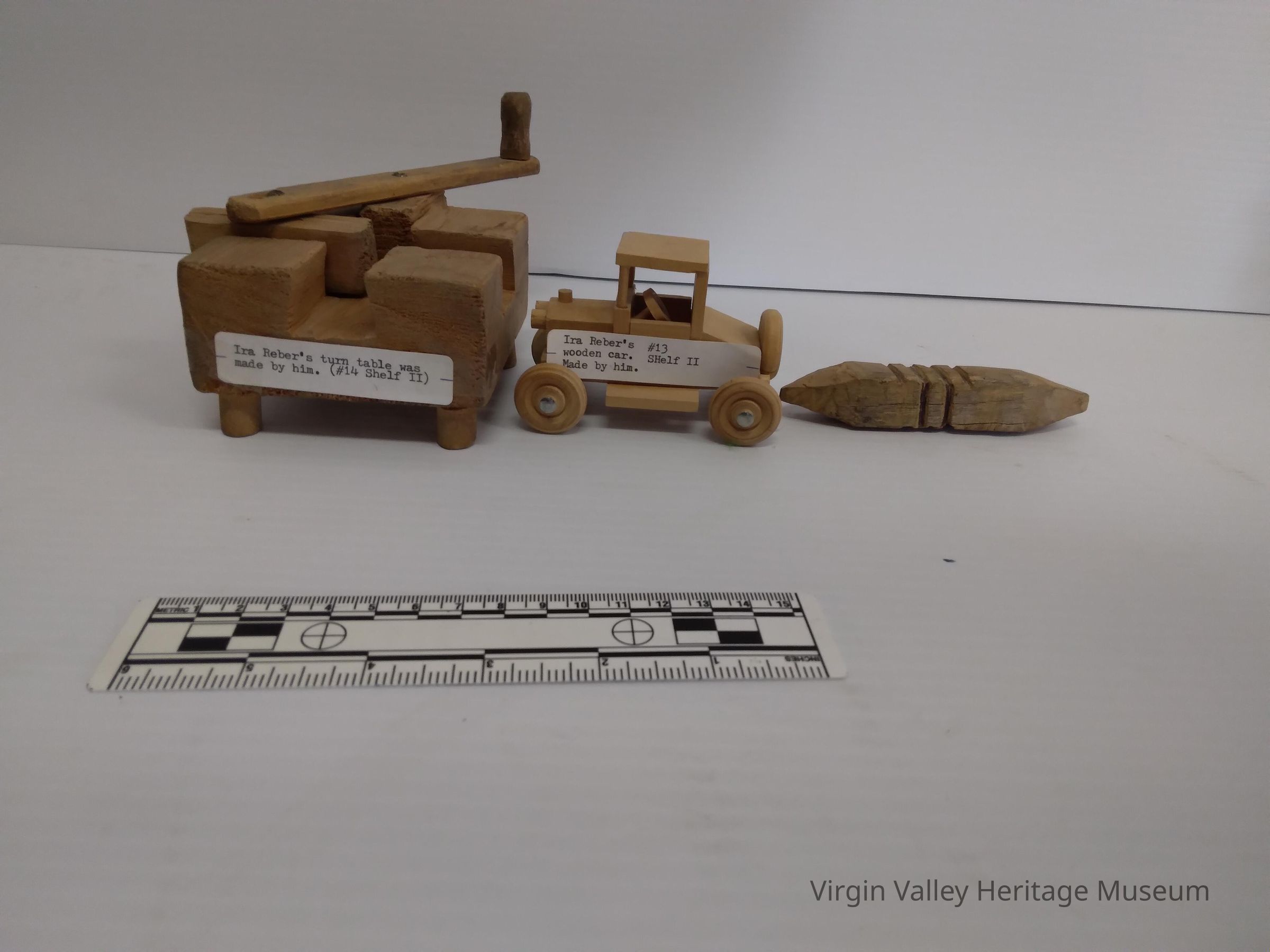 Ira Reber's turn table was made by him. Ira Reber's wooden car