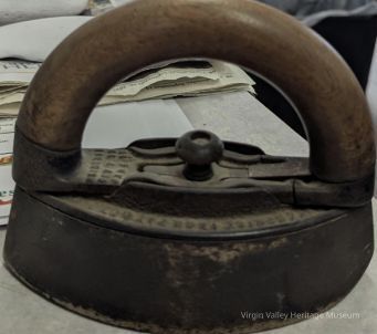 An iron that is heated by sitting it on the old wood burning stove.