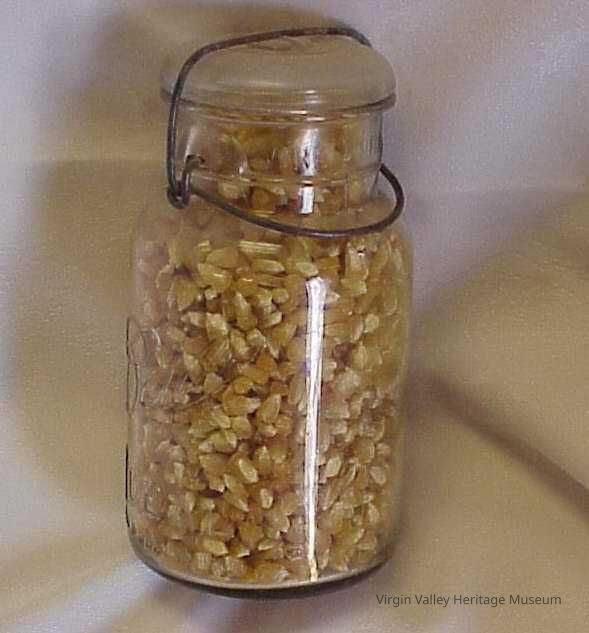 A canning jar that belonged to Ira Reber, child of Mary Jane and Sammy Reber Jr. and twin to Iva Reber. Ira married Ivene Nelson and the couple had one child, Carolynn Reber. After his father's death in 1939, Ira took over the family farm and took on the responsibility of taking care of his mother.