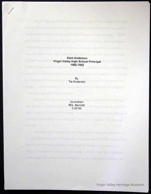 Kent Anderson Virgin Valley High School Principal 1986 - 1992