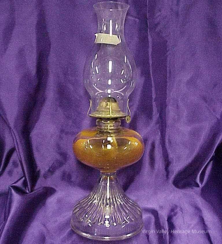 An oil lamp belonging to Nora Leavitt. Most oil lamps used coal-oil. Residents of Mesquite and Bunkerville had to go to Moapa and Las Vegas to acquire coal-oil.
