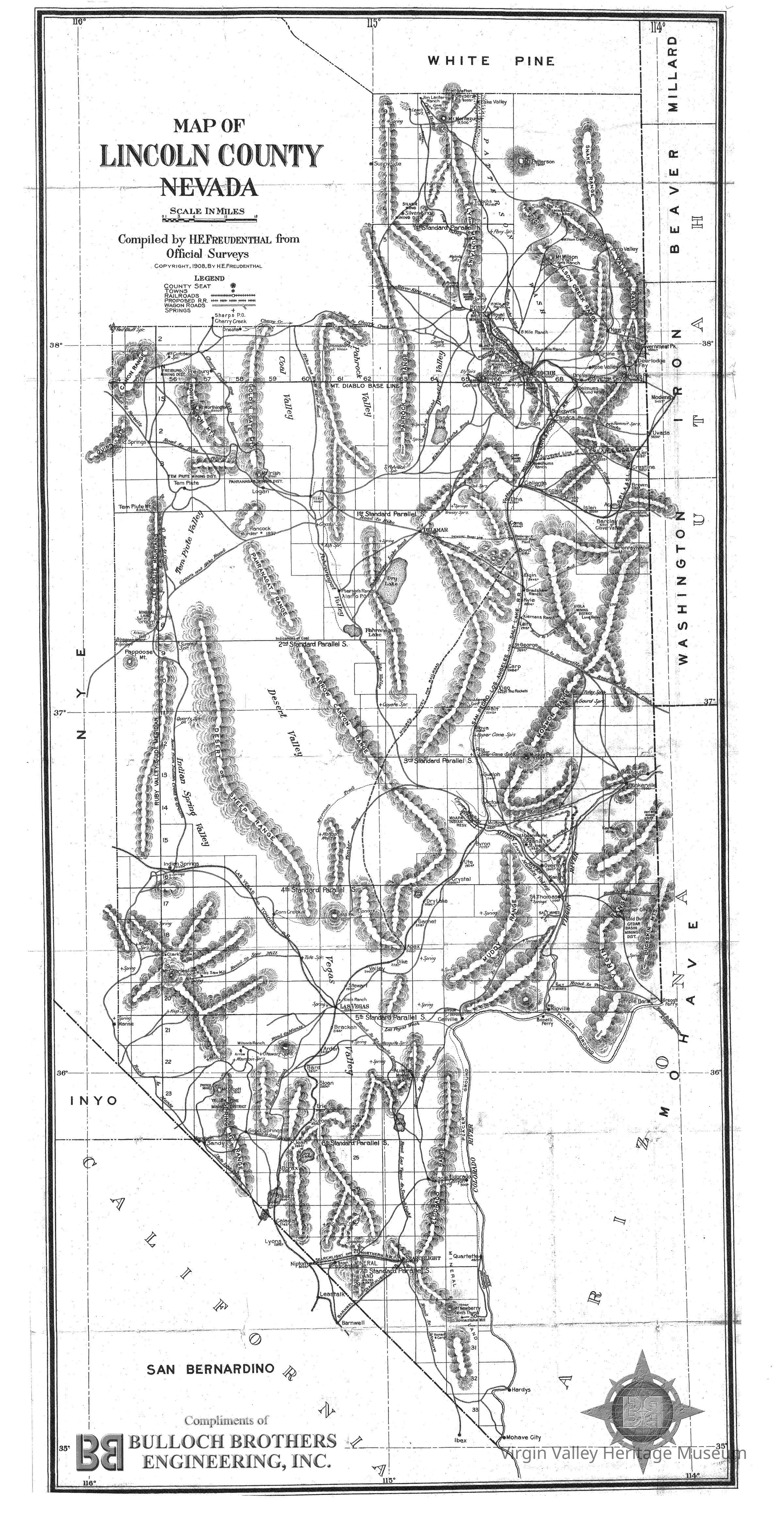 Lincoln Co. southern and southeastern Nevada. 1869 Mining districts 1908