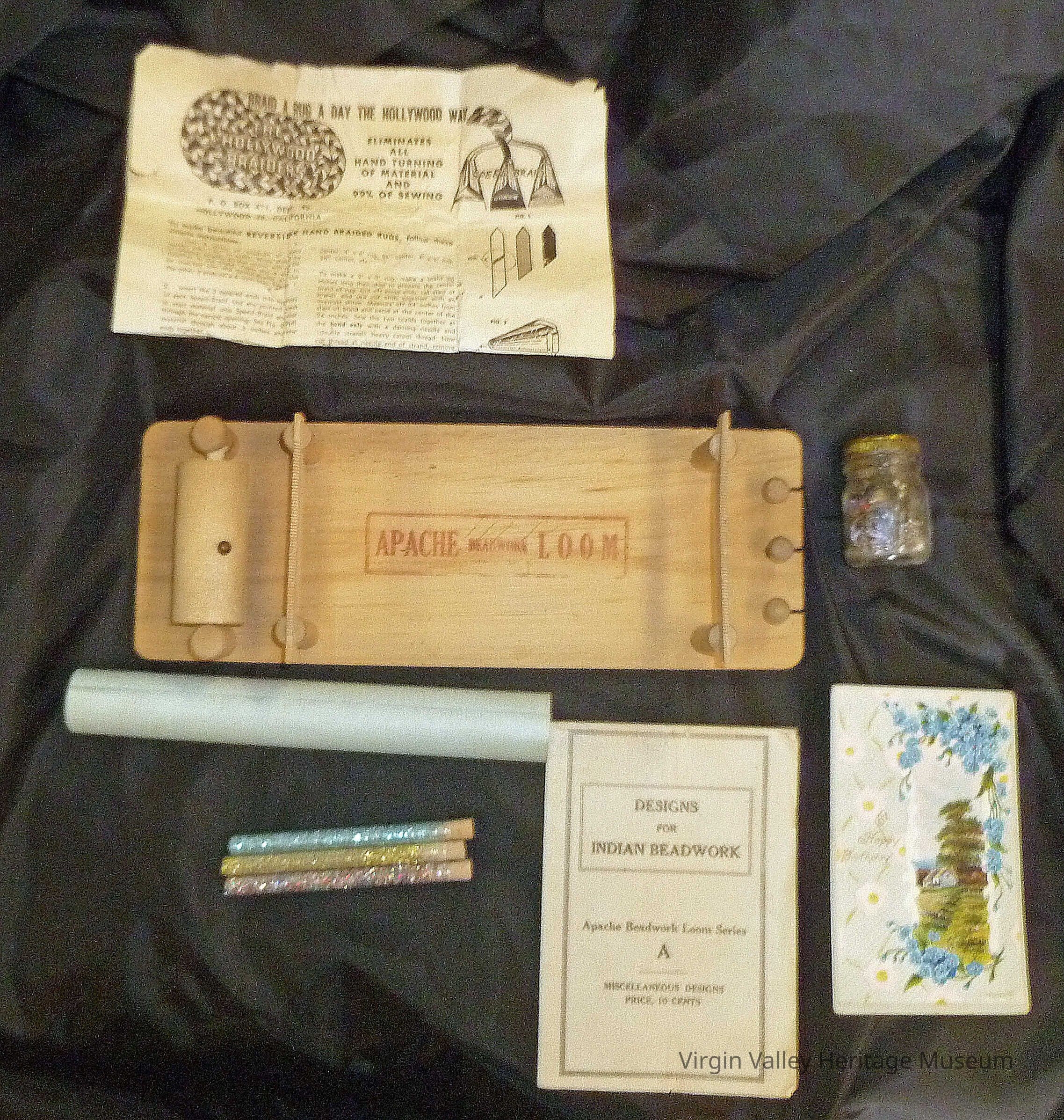 An Apache Bead Loom likely circa 1940s. This patented bead loom was used to make beaded Indian pieces, such as rugs, and came with a manual and a book of designs.