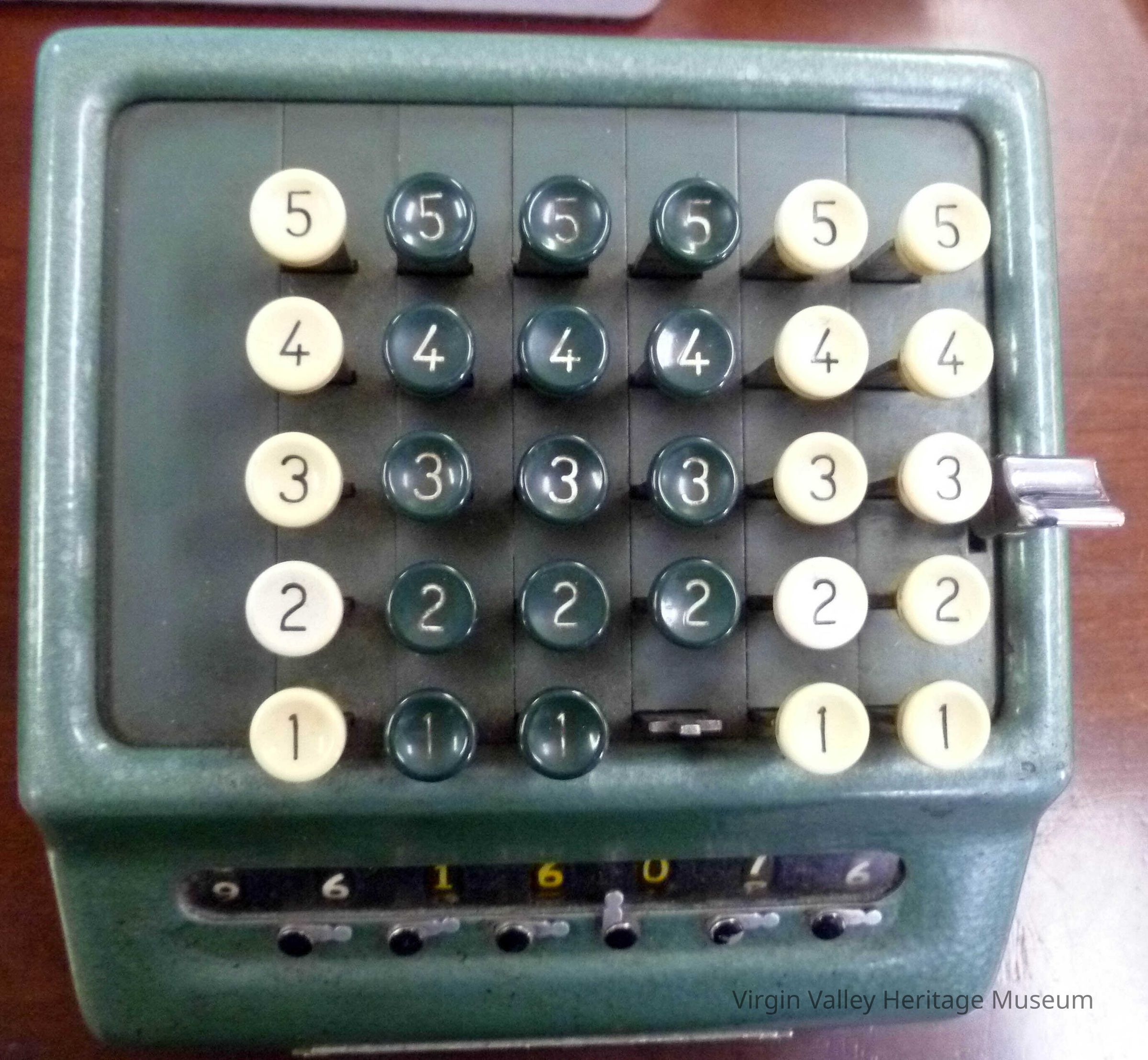 A PLUS Rapid Adder machine manufactured by Bell Punch Company in the 1950s. This machine was essentially just a calculator, and is a far cry from the calculators we are used to today.