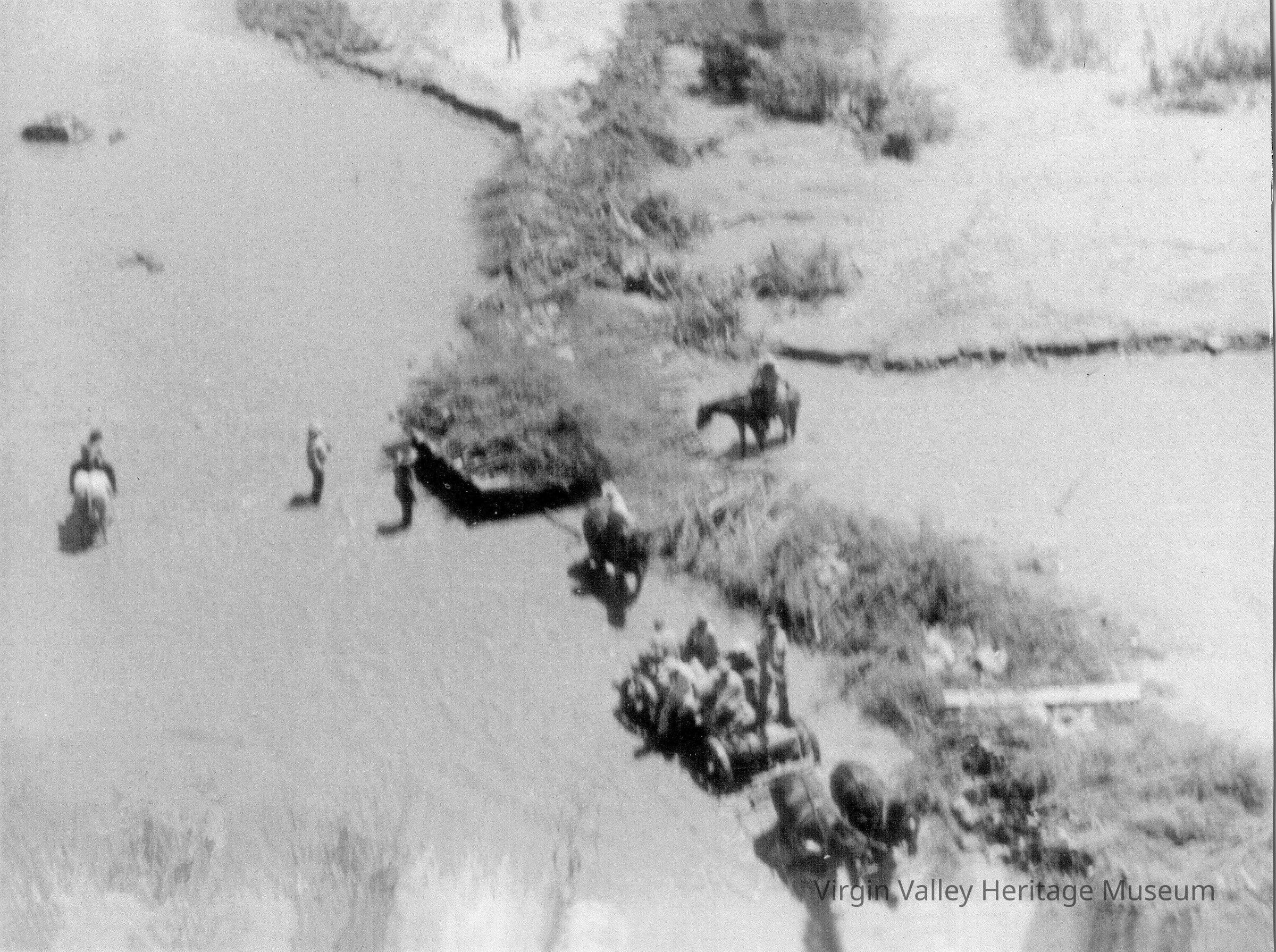 Picture of Mesquite Dam taken in 1952 by Dennis Reber, son of Ralston V. Reber 1903-1974, grandson of Samuel Reber Jr. 1871-1939, all three worked and fought the mighty Virgin River at this location that Mesquite might survive and flourish.