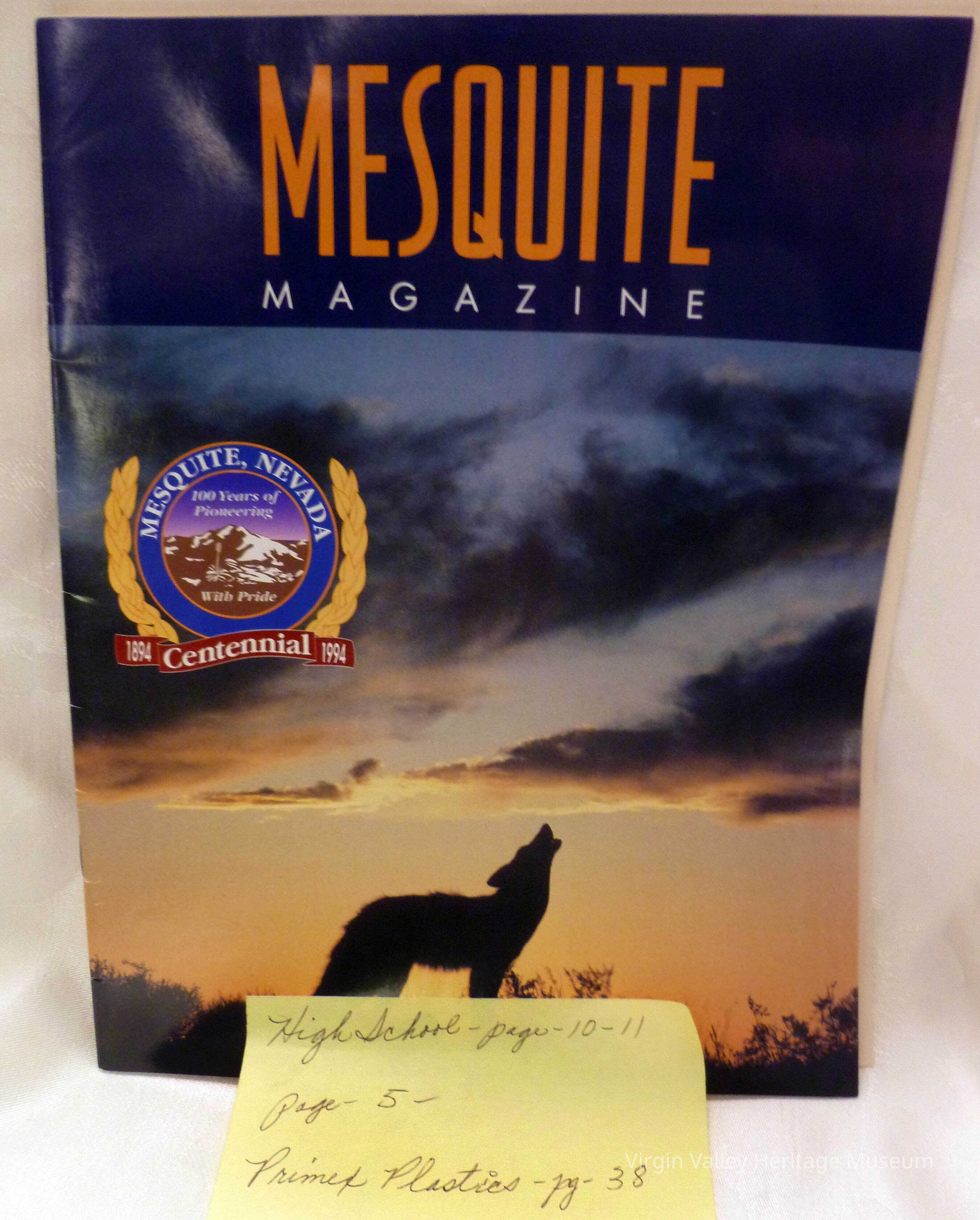 Mesquite Magazine Centennial 1894 - 1994 Produced by the staff of the St. George Magazine in cooperation with the city of Mesquite We have 2 copies in filing cabinet A-1-37