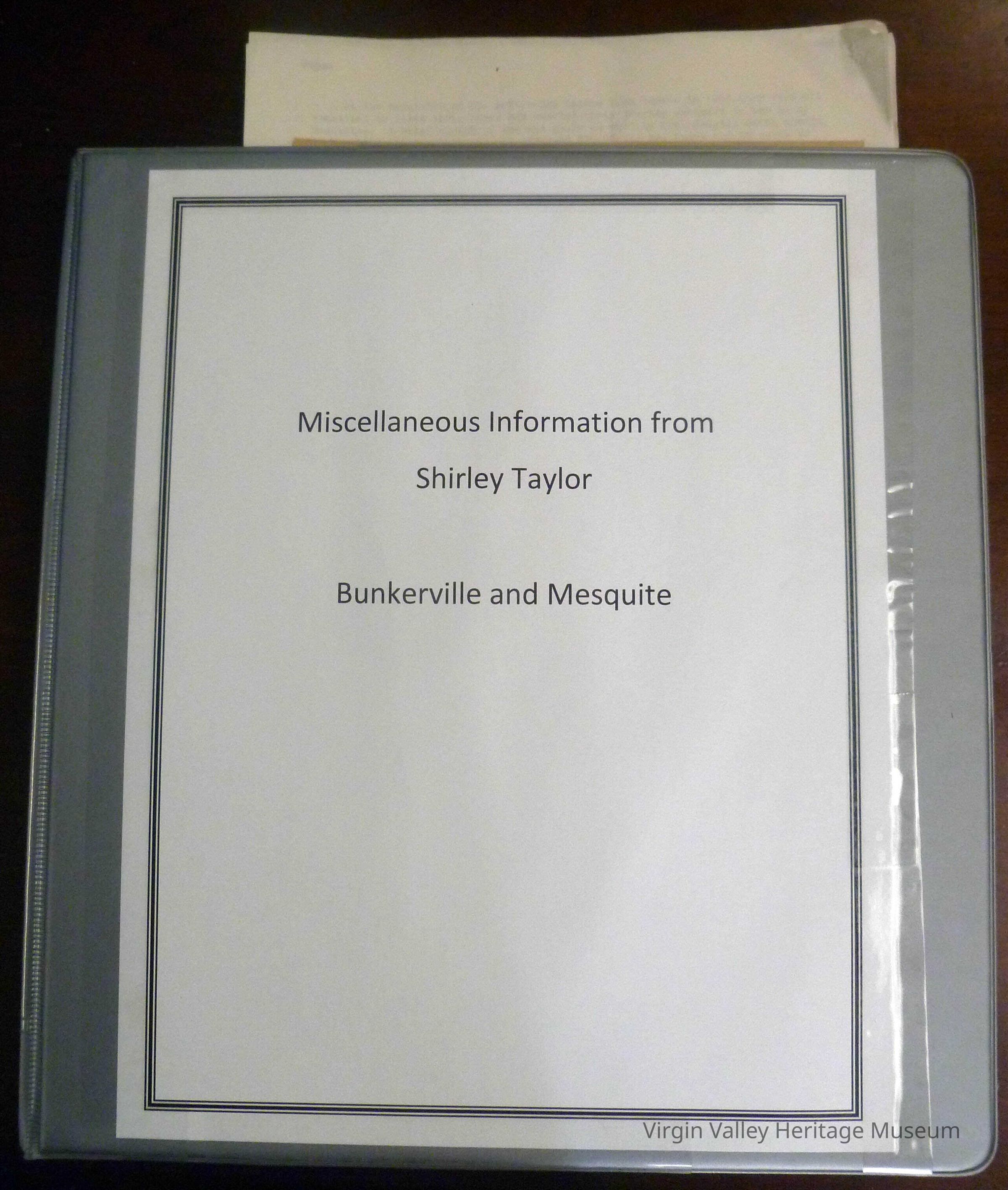 Miscellaneous Information from Shirley Taylor - Bunkerville and MesquiteEntry/Object ID