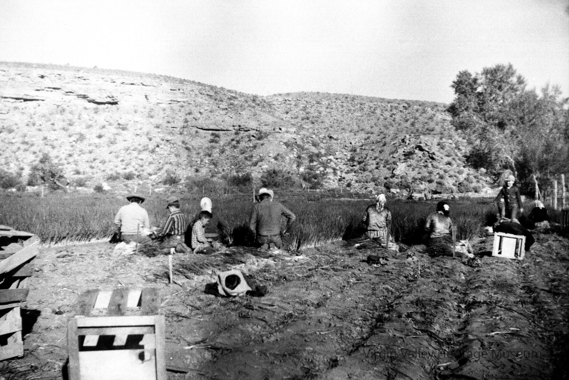 A photo of migrant Navajo workers helping to farm onion fields in Littlefield.