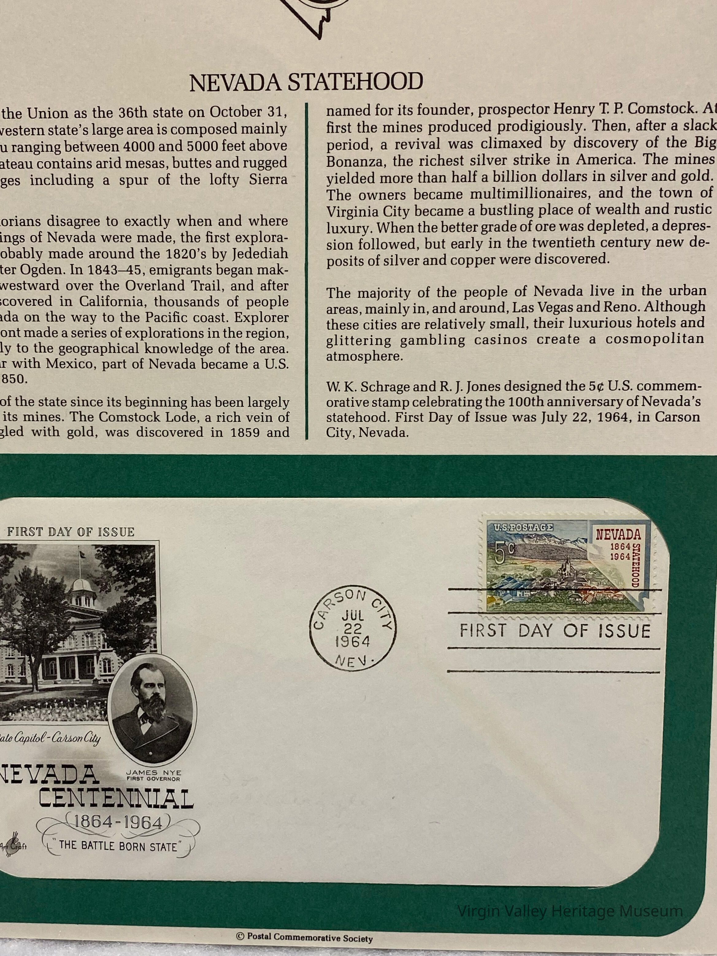 Nevada Statehood First Day Issue Centennial Stamp
