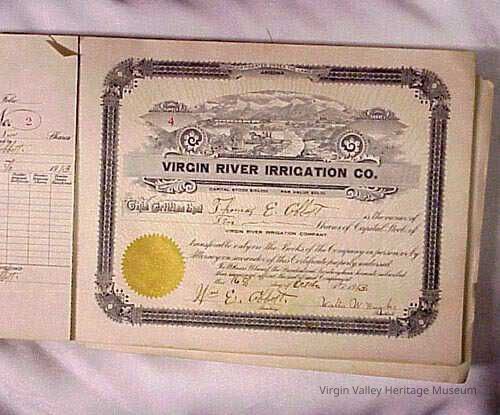 Original Ledger for Virgin Valley Irrigation Co. Original Certificates of Stock in the Company Circa 1913Entry/Object ID