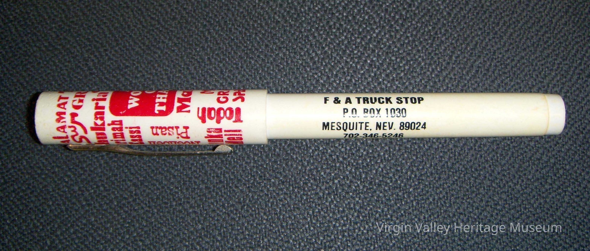 Pen from the F & A Truck Stop (Burns Truck Stop)