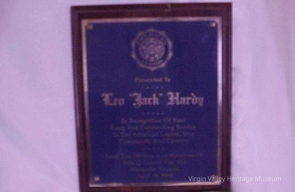 American Legion plaque awarded to Leo "Jack" Hardy in 1988