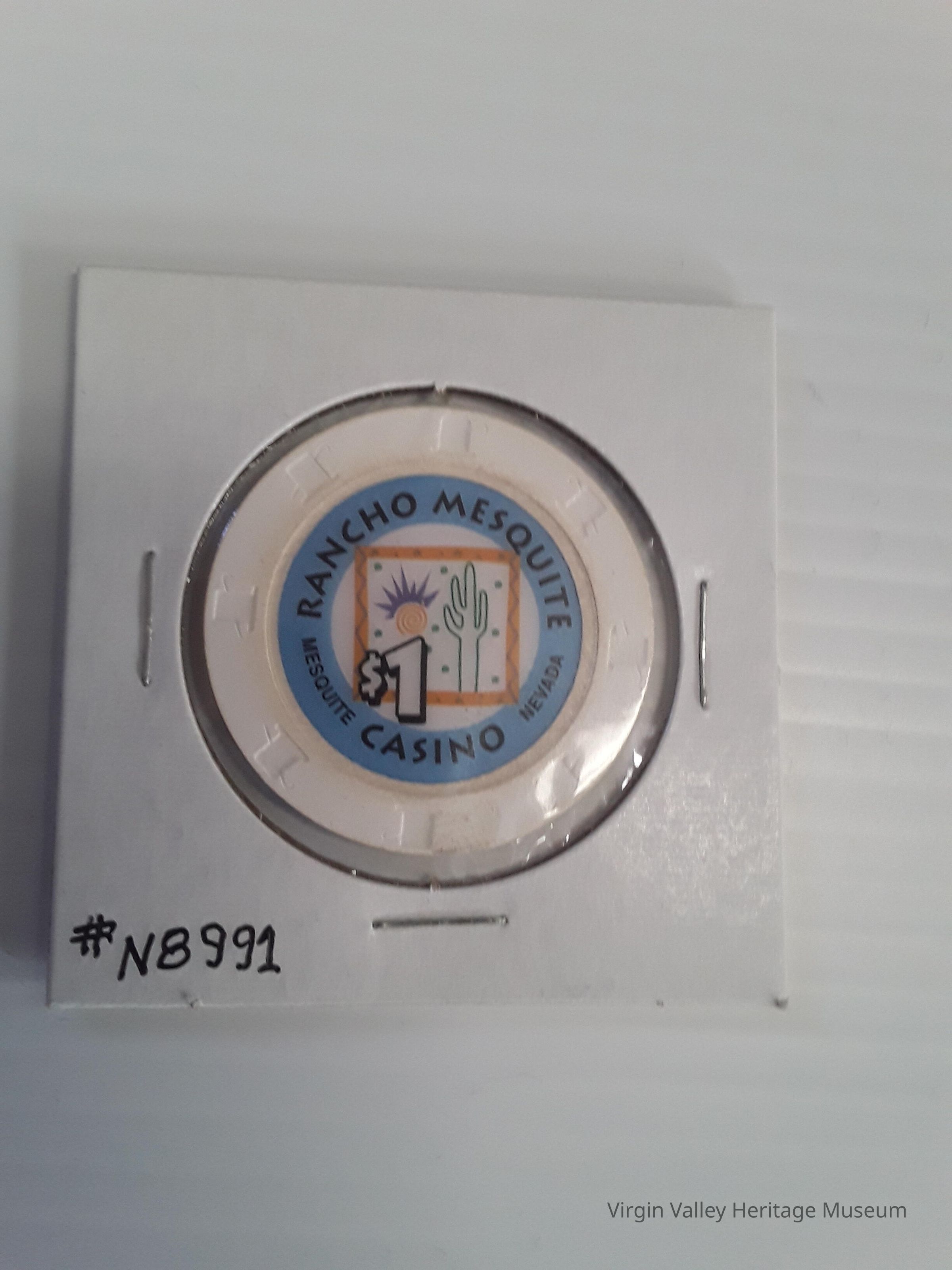 Five dollar poker chip from the Mesquite Star (circa 1980) One dollar poker chip from Rancho Mesquite (Mesquite NV) (Euerka Casino now)